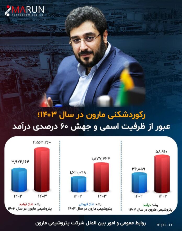 به نقل از روابط عمومی و امور بینالملل پتروشیمی مارون در سالی که صنعت پتروشیمی با چالشهای متعددی مواجه بود، شرکت پتروشیمی مارون توانست با مدیریت دکتر امین امرائی، عملکردی درخشان و کمنظیر را به ثبت برساند. عبور از ظرفیت اسمی تولید، رشد پایدار فروش و ثبت درآمدی فراتر از انتظارات، تنها بخشی از دستاوردهای مارون در سال ۱۴۰۳ است.
