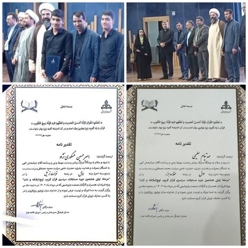 کسب رتبه اول رشته ترتیل قرآن کریم توسط جناب آقای امیر حسین عسکوری نژاد