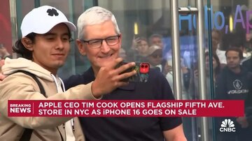 تیم کوک درهای فروشگاه اپل را گشود، با خریداران عکس سلفی گرفت و به مشتریان در راهآندازی گوشیهای جدیدشان کمک کرد. آیفون ۱۶ با استفاده